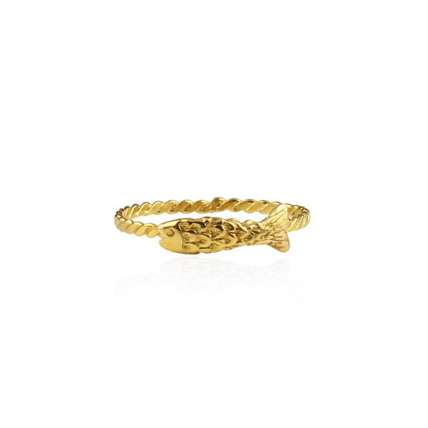 This ring features tiny fish painstakingly detailed. Add a quirky charm on your finger. A part of "Distant Memories of Mermaid" collection.