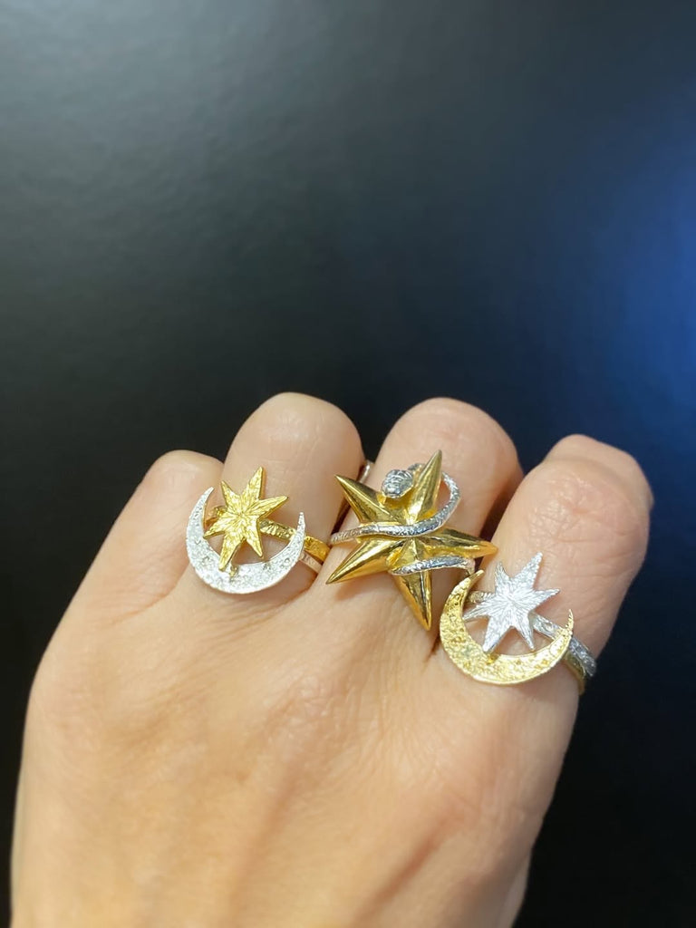 The snake adds a sense of power and strength to this very eye catching ring. The shank of the ring is the body of the snake so when worn, it appears that the snake is holding the star onto your finger!